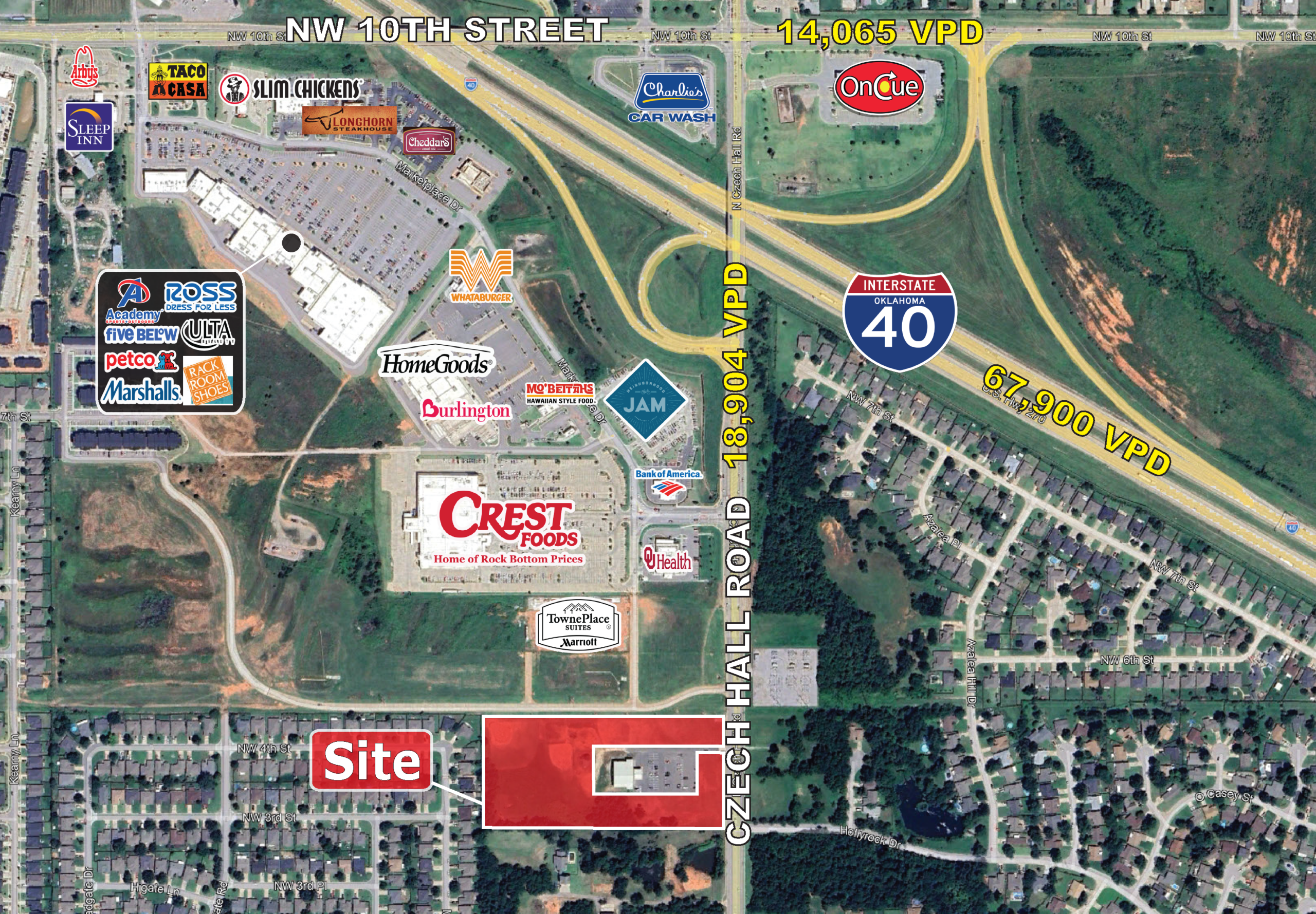 - Immediate vicinity of Major Retailers: Crest Food, Academy Sports & Outdoor, Ross Dress for Less, Marshalls, Five Below, Petco